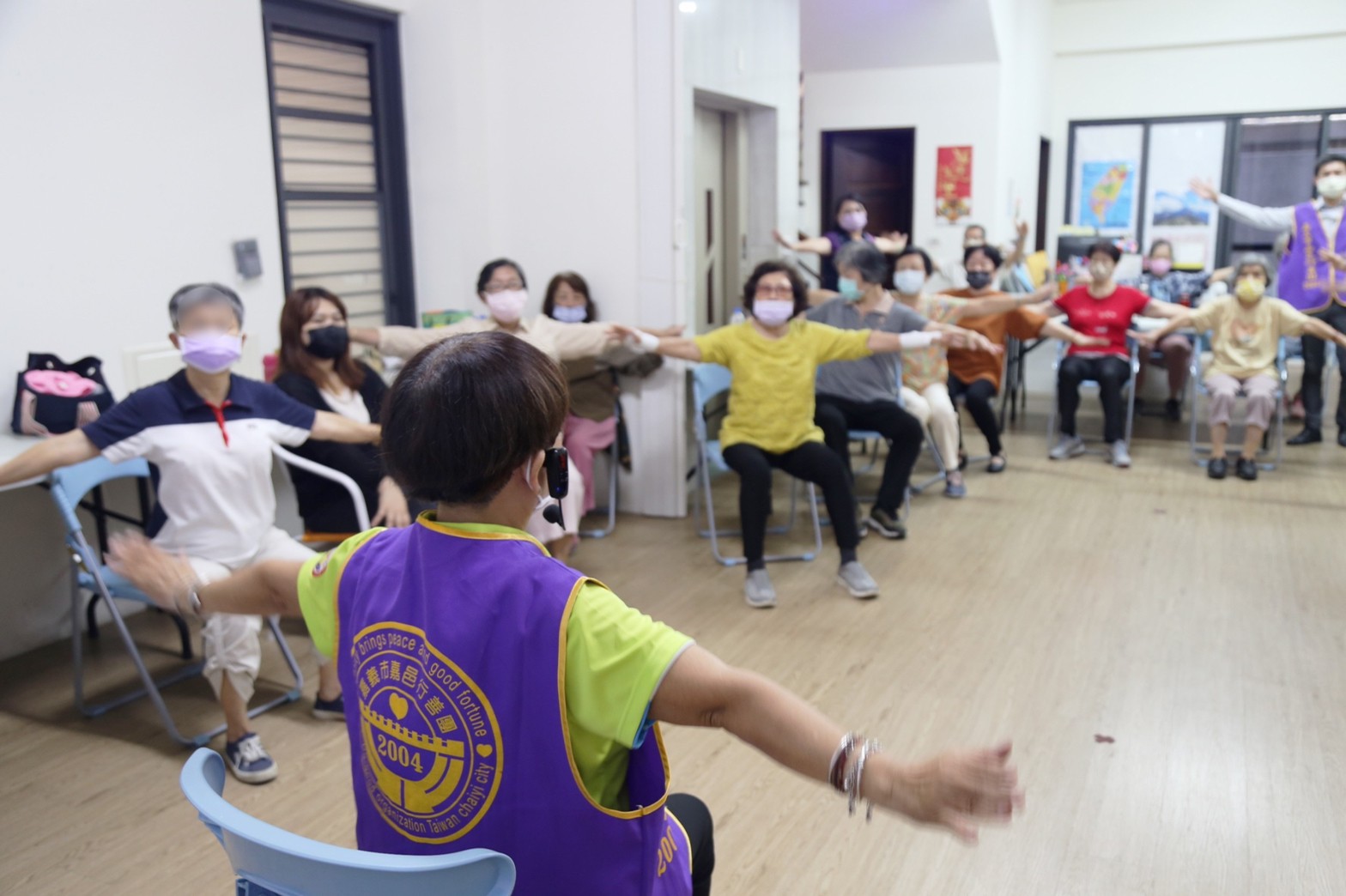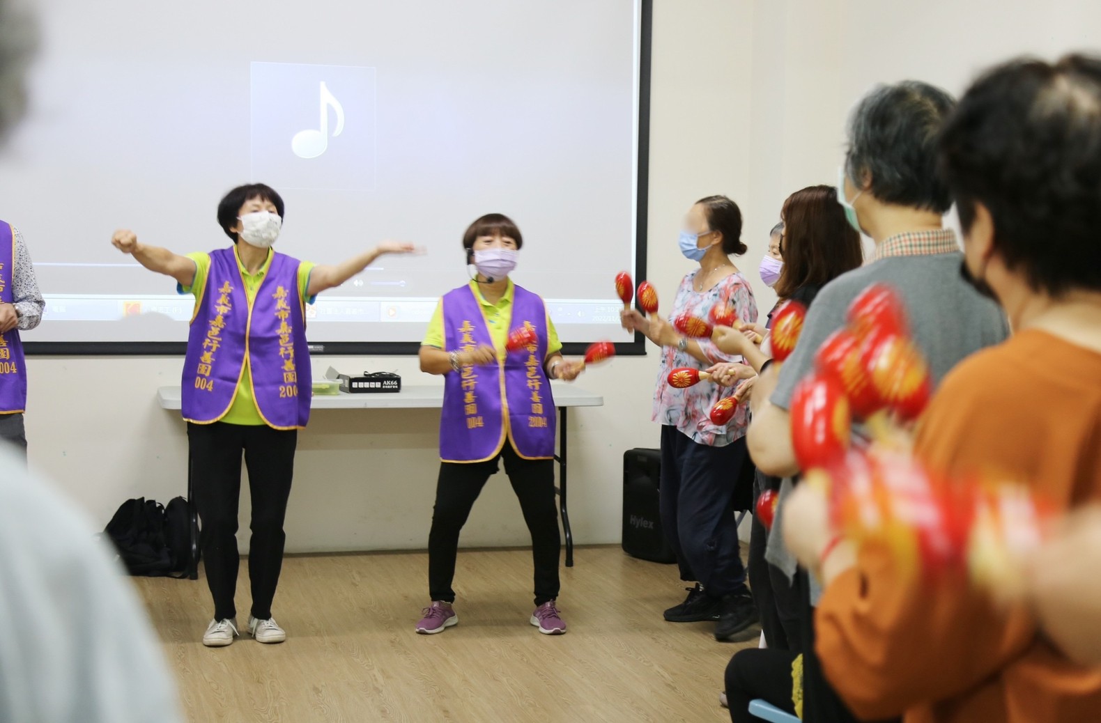 這次由志工榮艷老師擔任打擊樂指揮,負責帶動曼波健康操~以響木和沙鈴分組演奏,體驗團隊合作,鼓勵長輩運動鍛鍊肌力、延緩退化。![]()