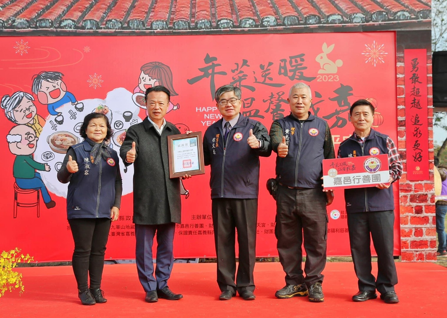 天氣是冷的,但是大家的心是熱的!響應嘉義縣政府 年菜送暖溫馨我嘉 活動,本團捐贈每戶600元年節紅包共1500份,一起把愛送出去。徐文志理事長說,翁章梁縣長在擔任社會局長任內,開創了親手服務、送暖到家的活動,今年帶領共415位縣府員工擔任一日志工,出動198車輛,以實際行動關懷弱勢家庭,把愛心年菜親自送到邊緣戶家裡。嘉邑行善團很榮幸能參與送暖到家的活動,與每個捐贈單位一同傳遞善的信念、傳愛過好年!![]()