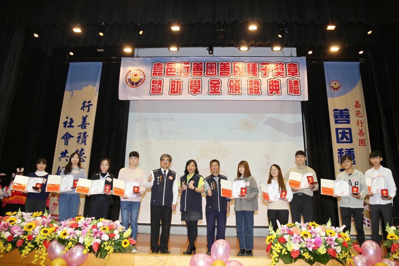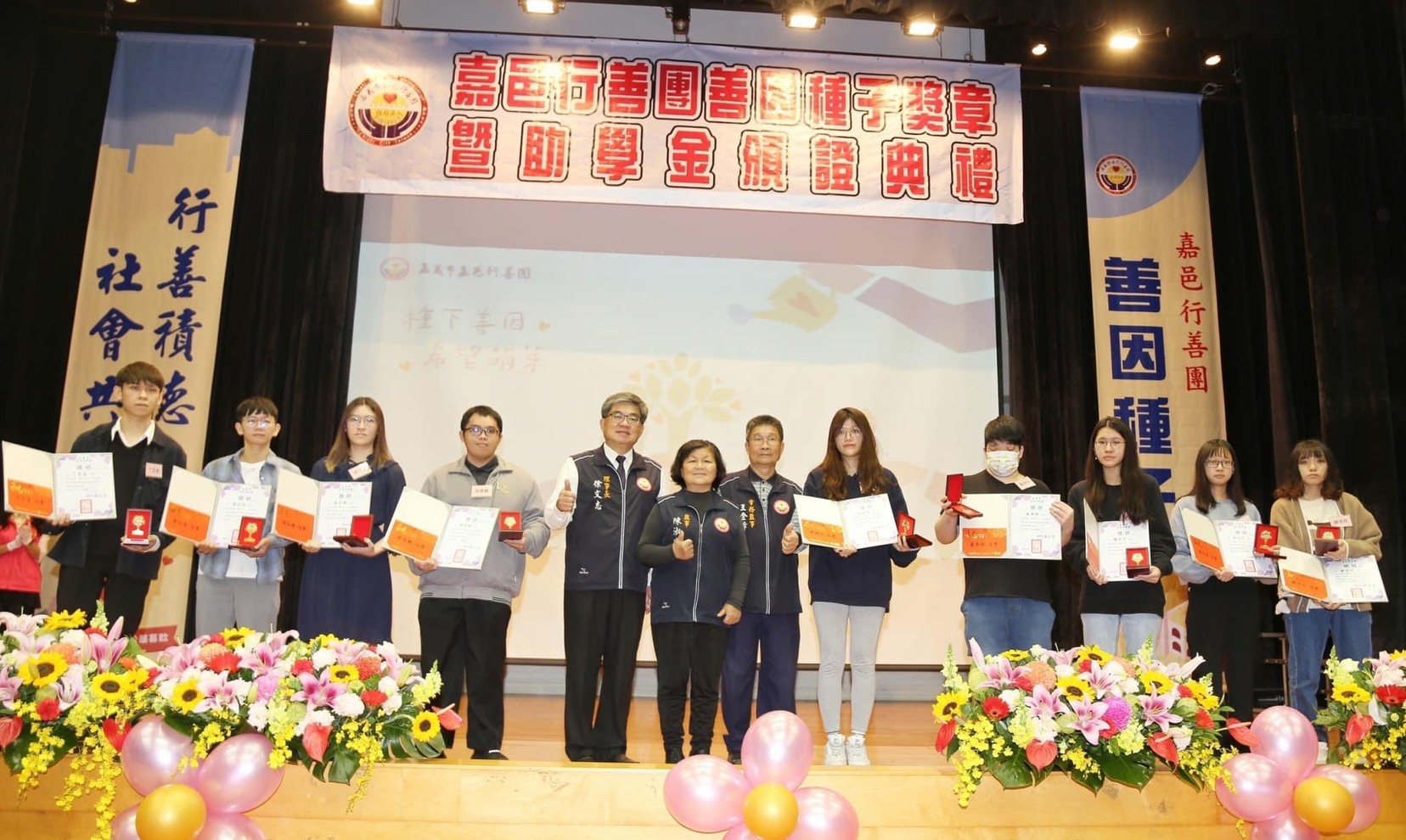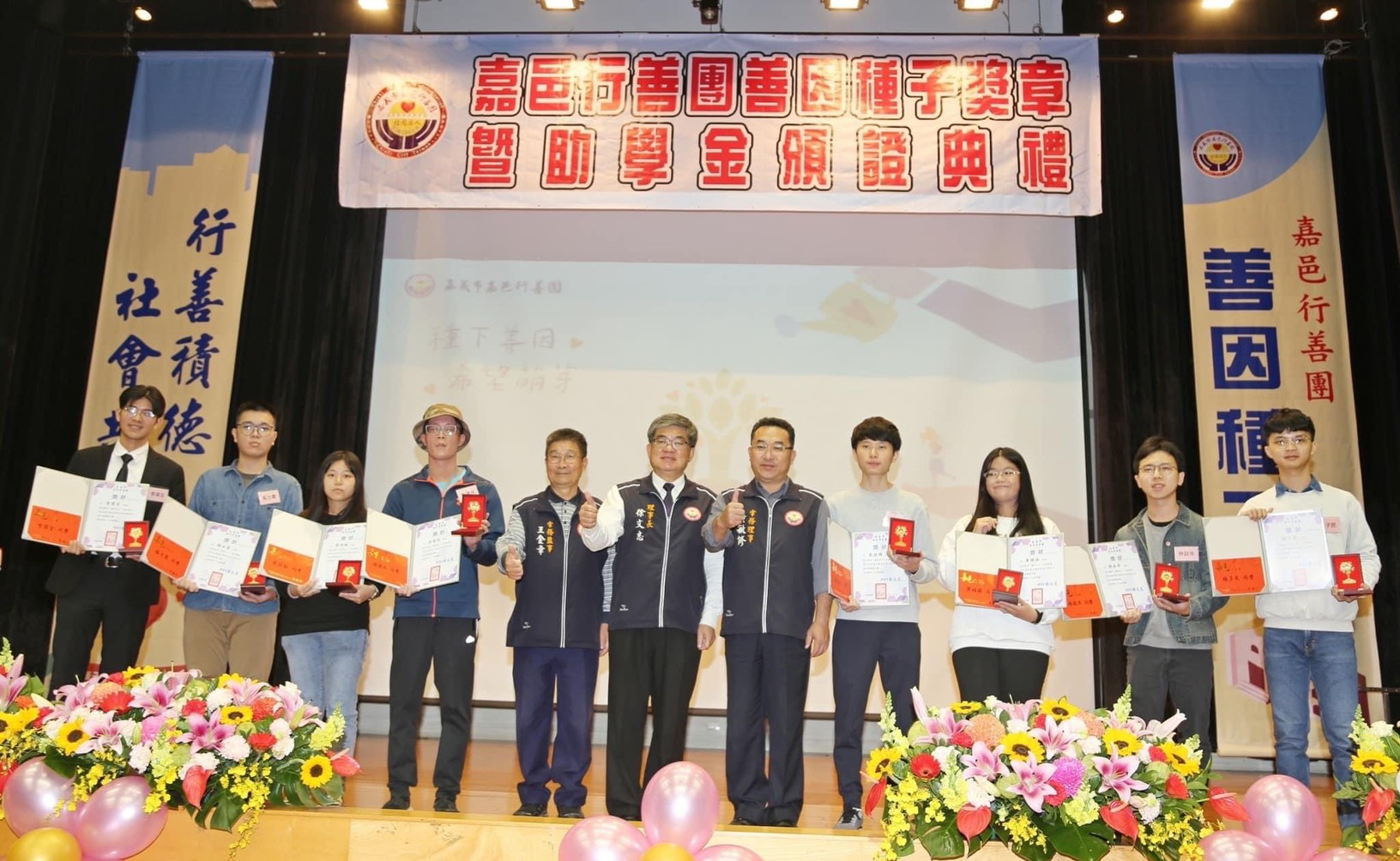 徐文志理事長說,嘉邑行善團在長期關懷訪視的過程中,深切體認到,經濟弱勢家庭的優秀學生在教育資源上的匱乏,進而推動善因種子助學計畫,這也是為世間土壤埋入一顆顆善心的種子,希望受獎學子有朝一日,也能成為別人的貴人,讓心中的善念,薪火相傳!