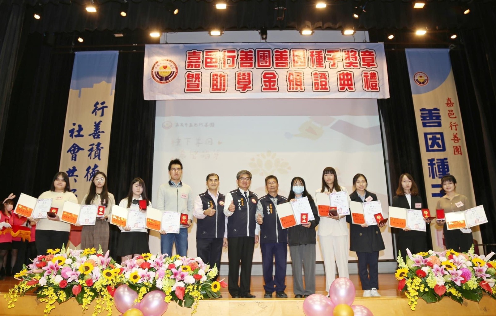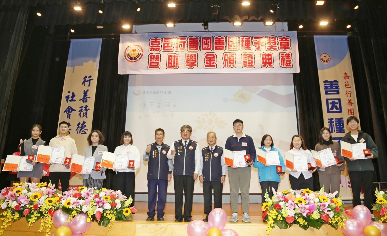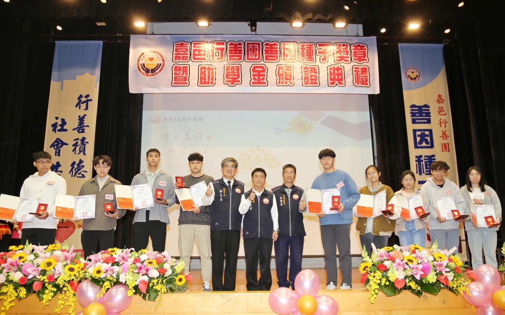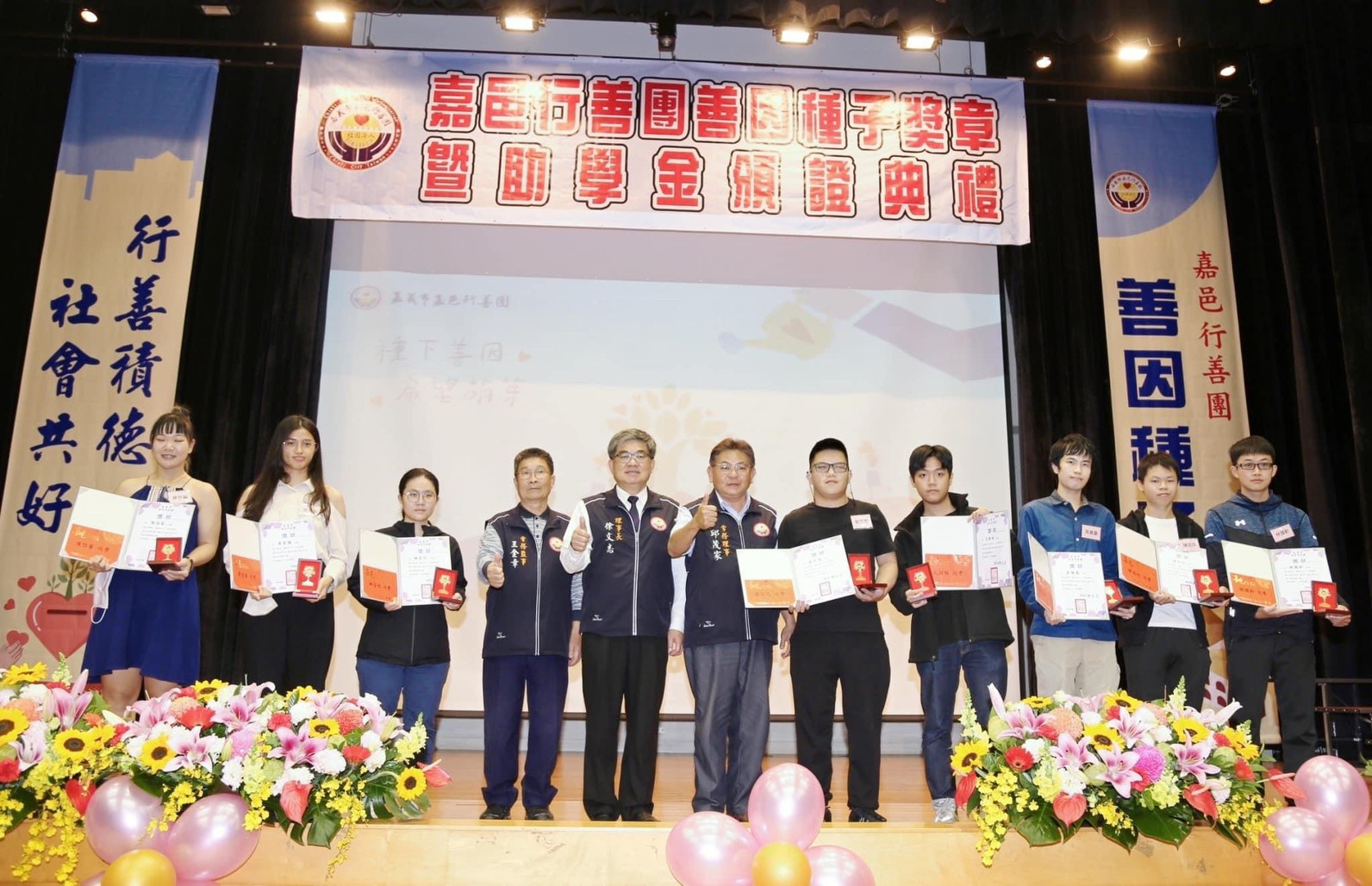 徐文志理事長說,嘉邑行善團在長期關懷訪視的過程中,深切體認到,經濟弱勢家庭的優秀學生在教育資源上的匱乏,進而推動善因種子助學計畫,這也是為世間土壤埋入一顆顆善心的種子,希望受獎學子有朝一日,也能成為別人的貴人,讓心中的善念,薪火相傳!