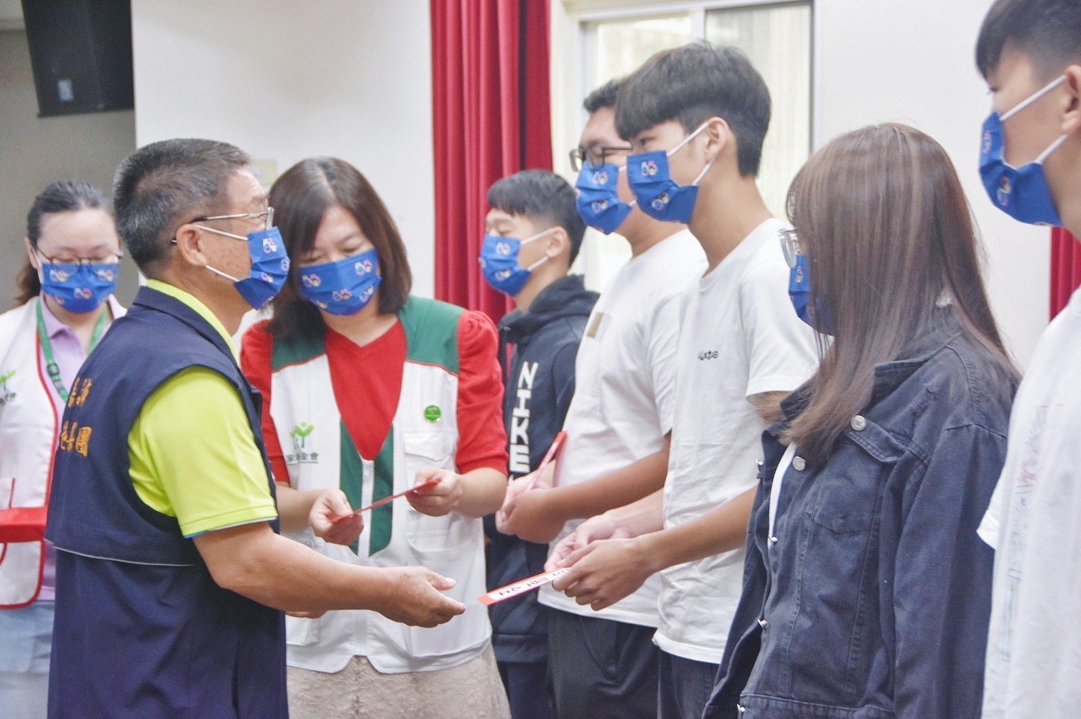 111.9.3~在大學的開學前夕,由理事長徐文志、常務監事王金章以及也是嘉義市西區議員候選人的常務理事黃敏修,一同代表頒發助學金,給獲助的孩子們一個加油鼓勵。