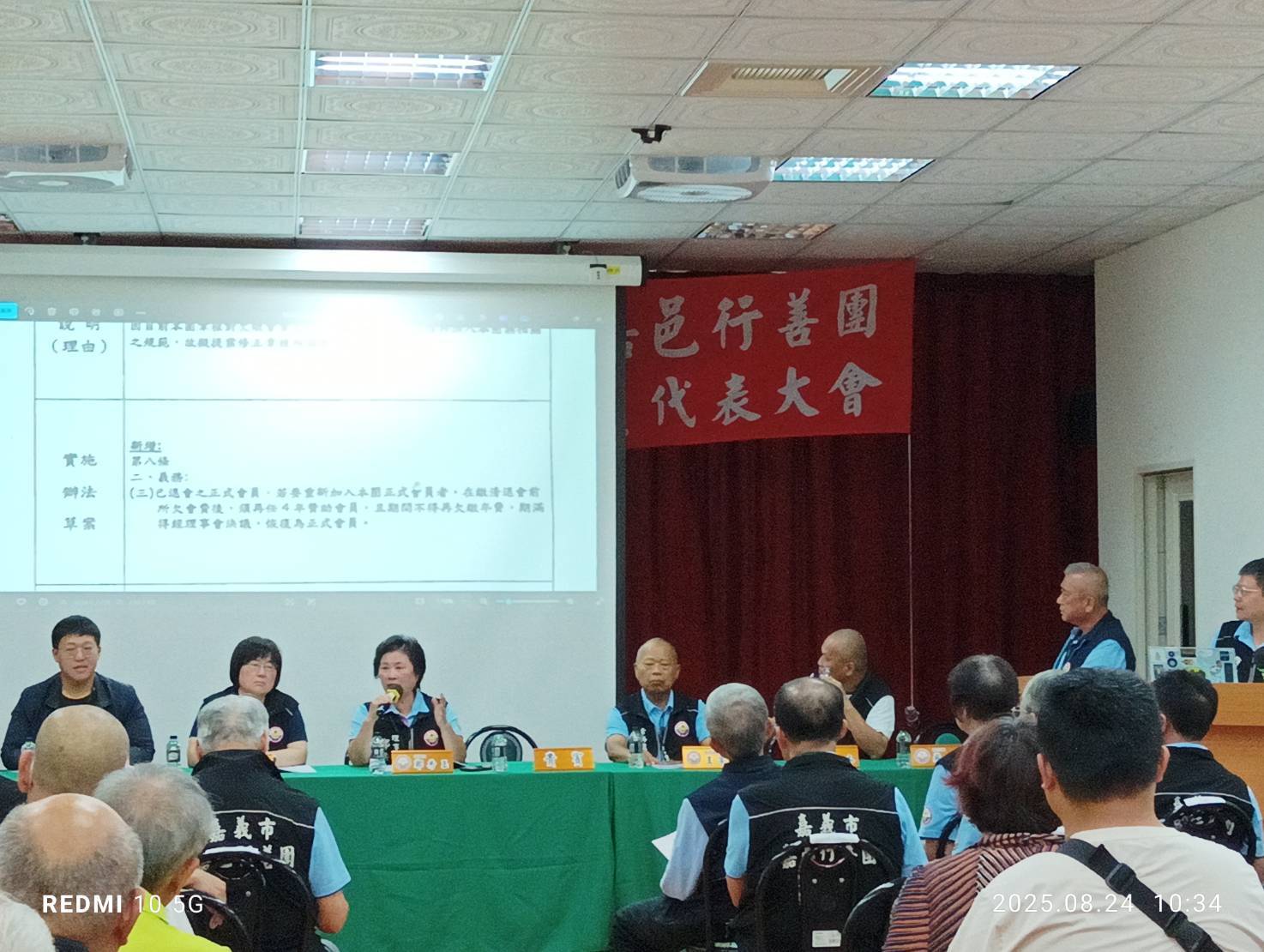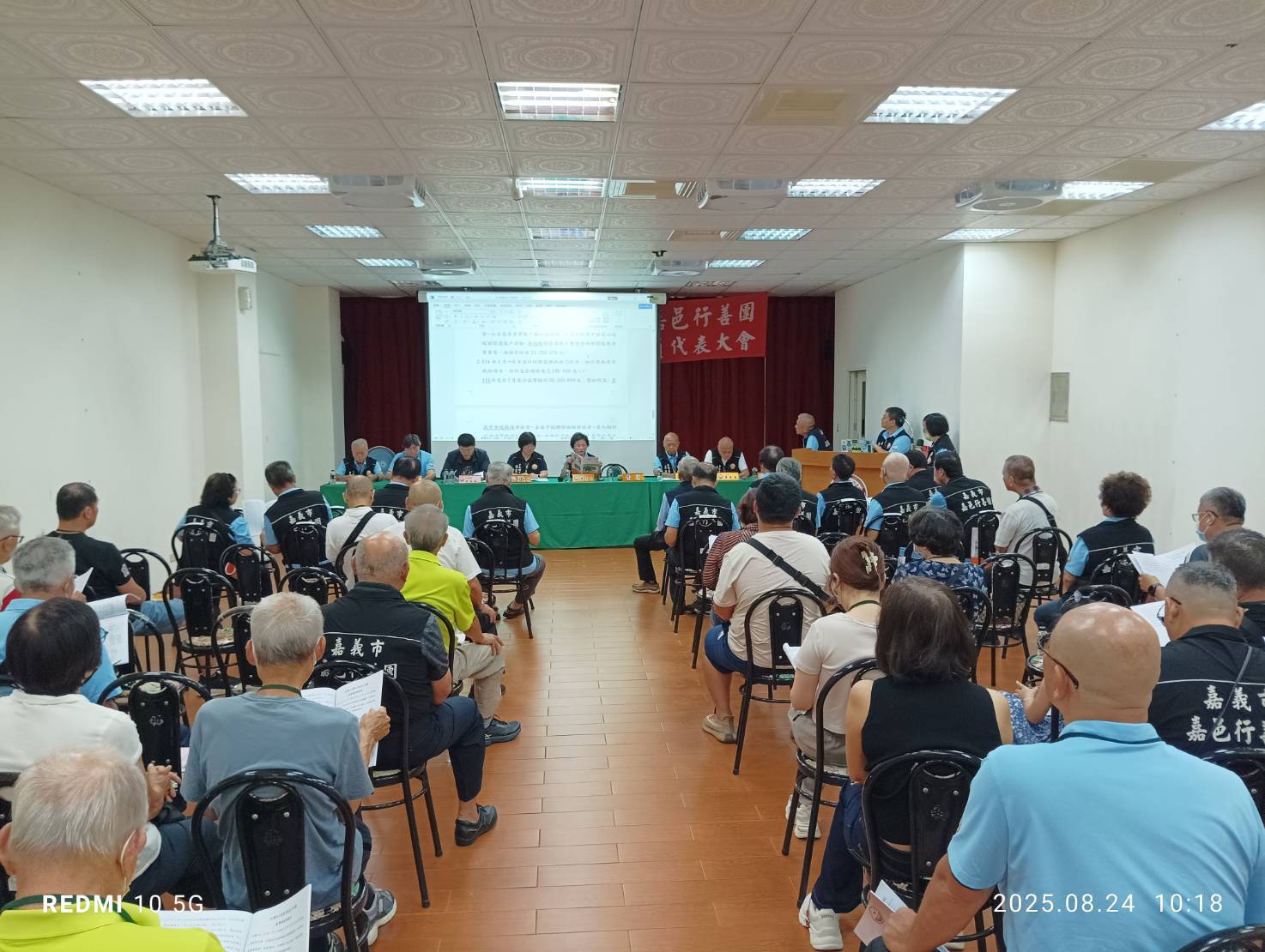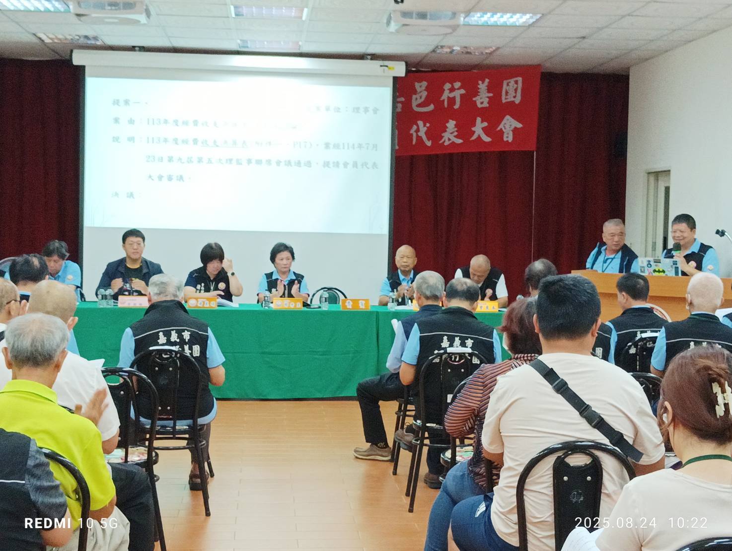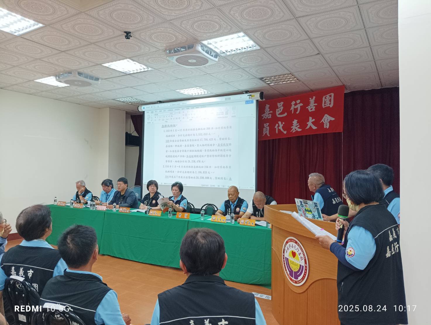 114年8月24日,嘉義市嘉邑行善團於團部3樓舉行「第9屆第2次會員代表大會」,由鄭秀玉理事長主持,應到代表人數66人,實到加委託出席共59人,出席率近9成。