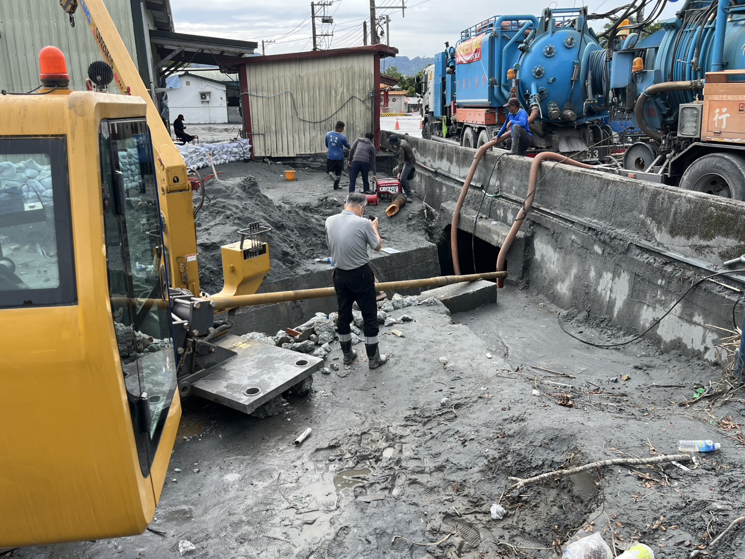 救援隊日以繼夜投入災後清理及民生救助工作,不畏烈日與豪雨,協助清除大量淤泥、搶通中斷道路、運送救援物資,並幫助居民整理受損家園。團隊更調派全國最大型700型挖土機,加速土石清運與堆置作業,提升整體效率,成為災區第一線的堅強後盾。