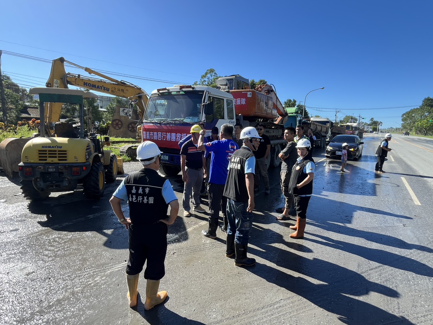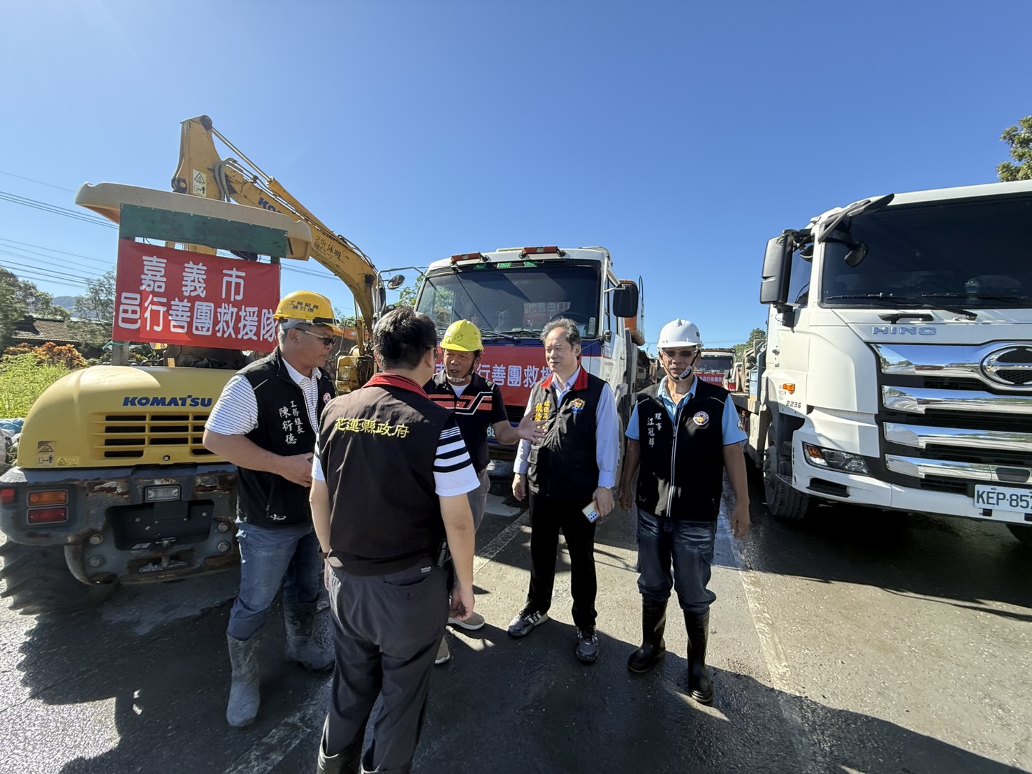 嘉邑行善團秉持「急難救助、扶危濟困」之宗旨,緊急召開常務理事會議,研議救災方案,決議由本團協調重機具廠商協助清理土石、泥沙及障礙物,以實際行動協助地方政府推動災後復原工作。