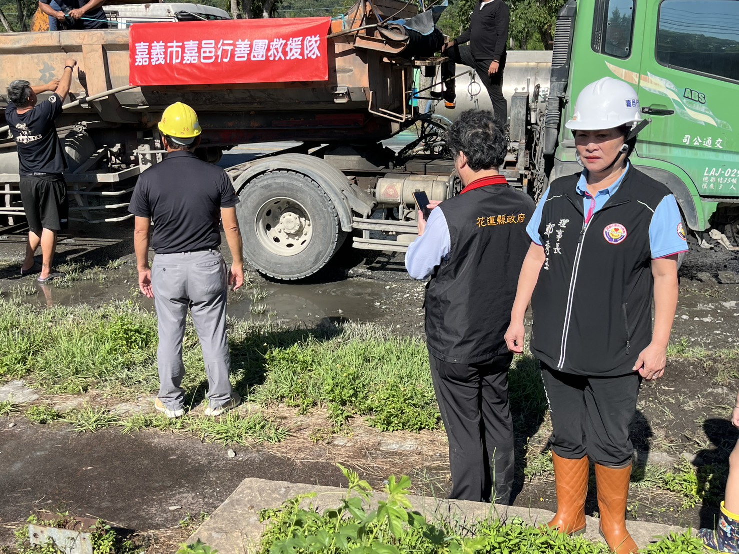 9月24日晚即由鄭秀玉理事長帶隊,率領蔡坤璋執行長,江冠輝理事,陳民賢監事及工務組同仁前往花蓮勘災,並協調廠商提供重機具配合當地政府進行清理作業。