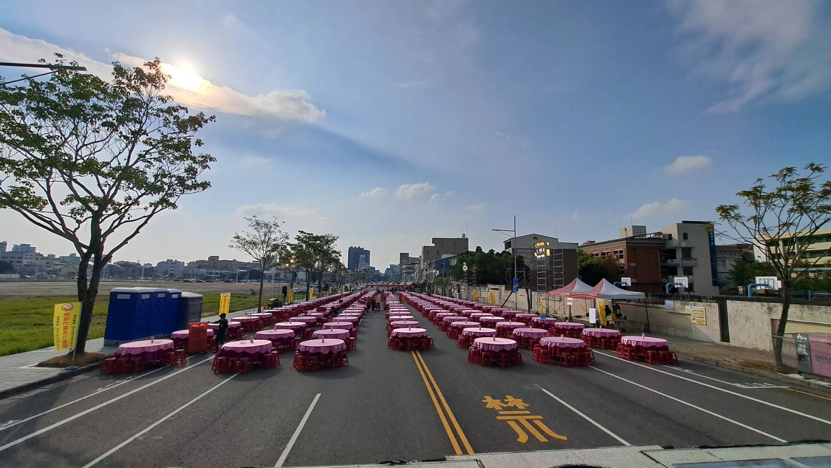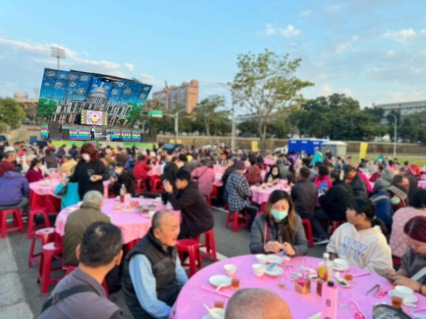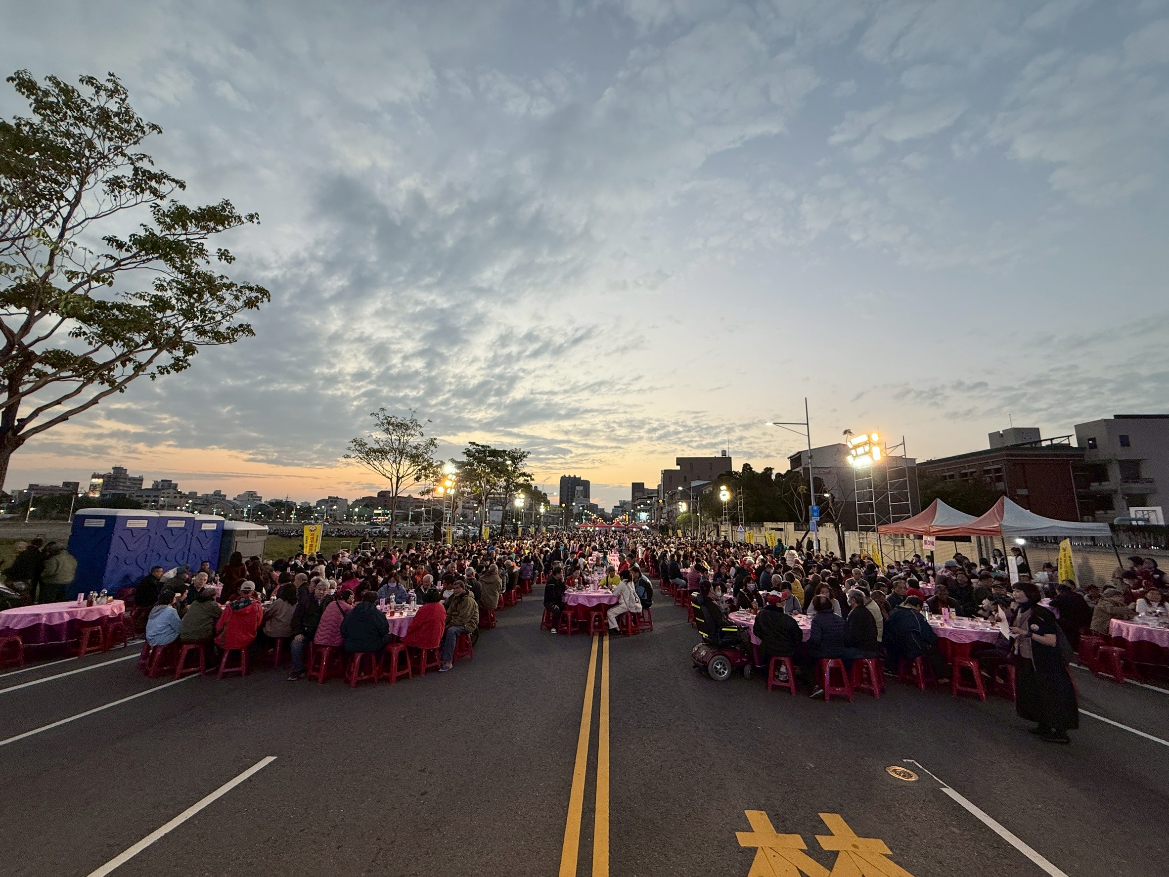 封街席開185桌,邀請上千位弱勢民眾圍爐吃年夜飯。