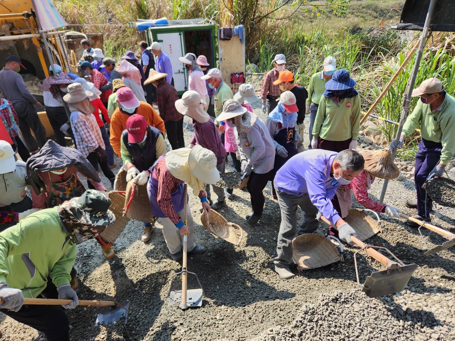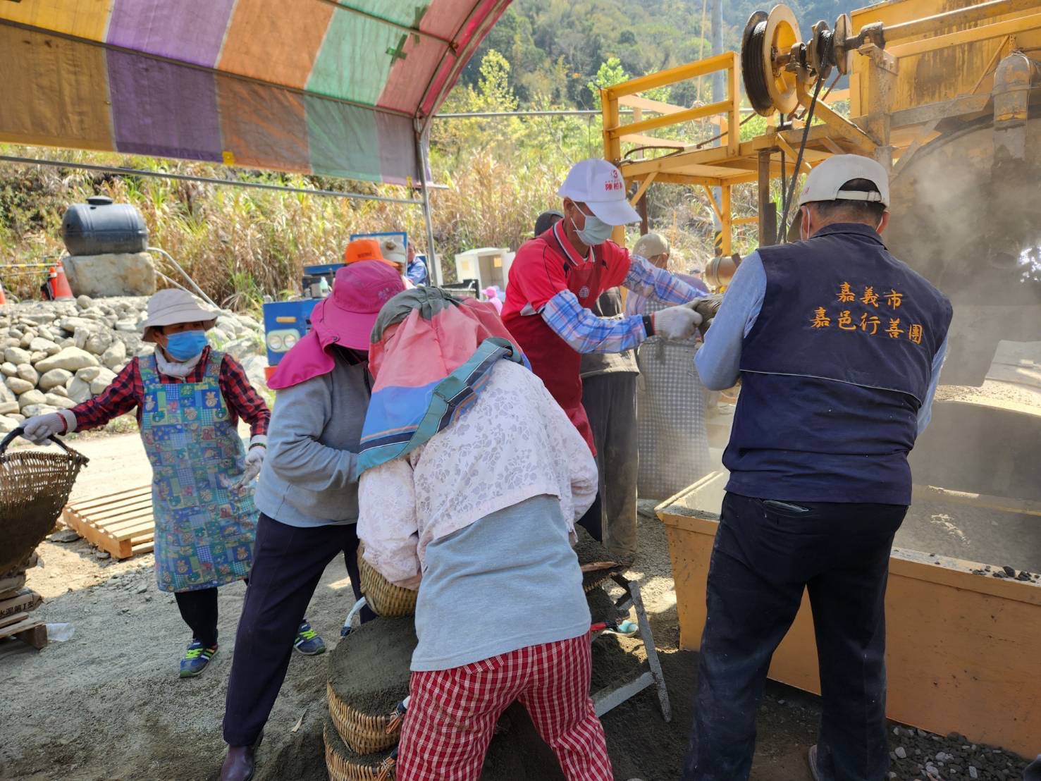 ,上週六徐文志理事長與常務理監事們再次上山,與義工一起參與搬運砂石,同時仔細勘查目前施工情況。