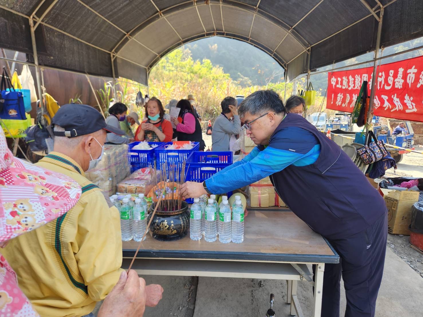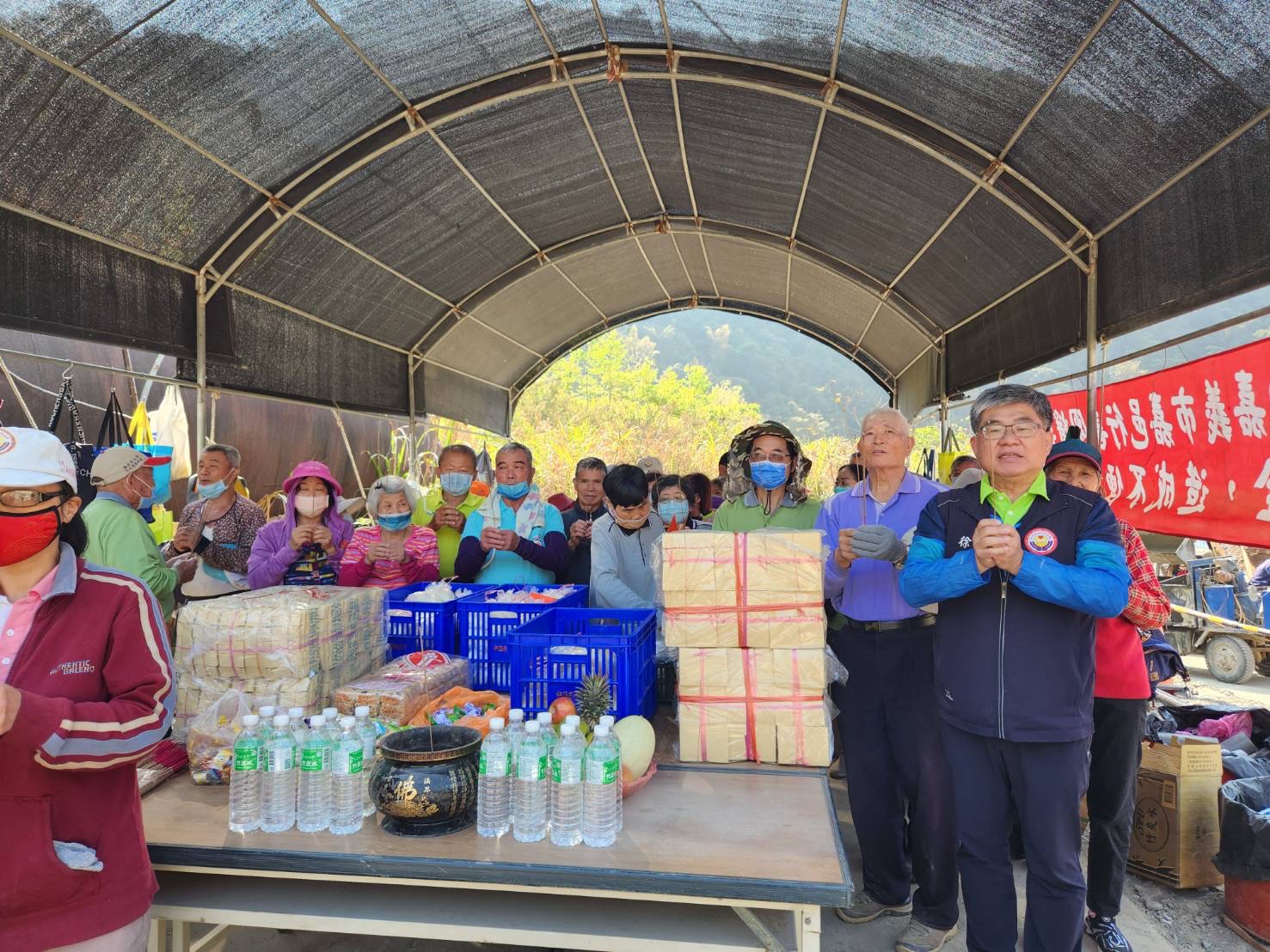 徐理事長感謝義工把汗水和勞力奉獻給偏鄉橋樑建設,當天帶著大家向上天祈求造橋工程順利、一切平平安安。